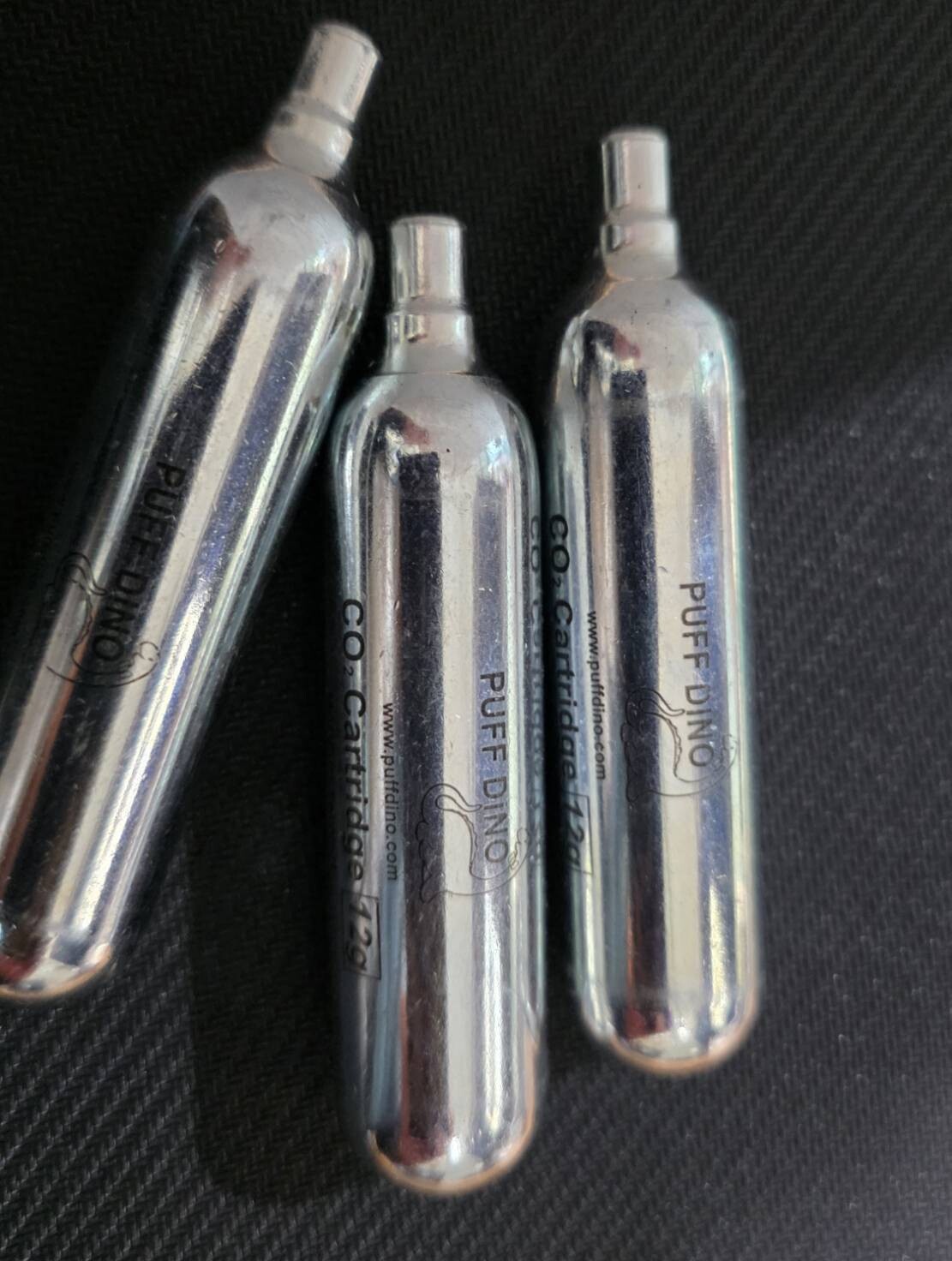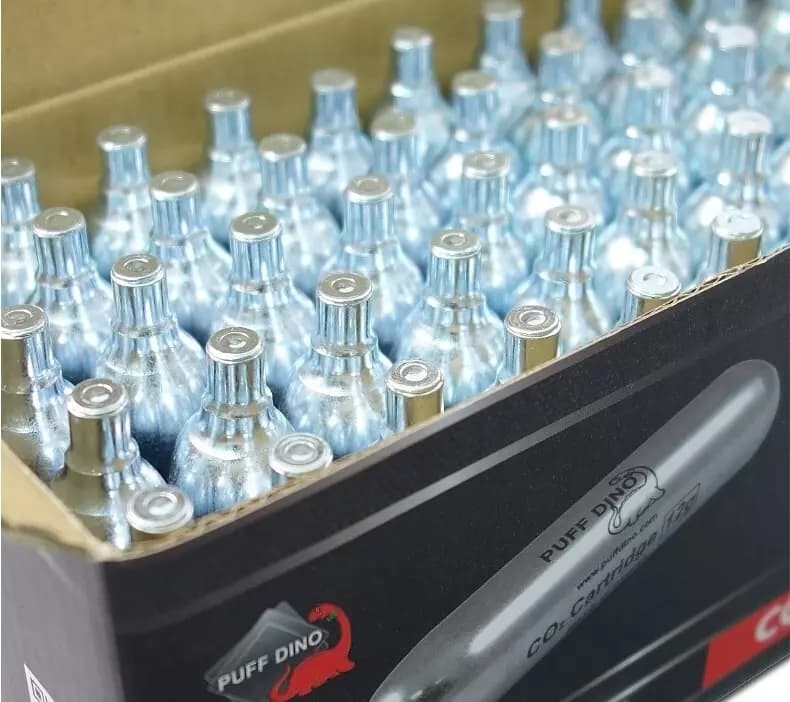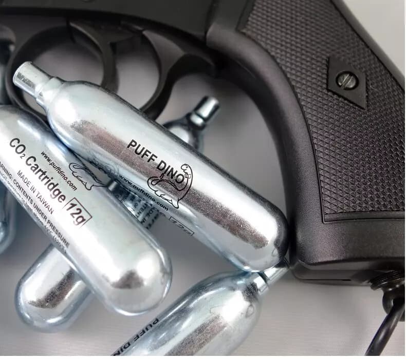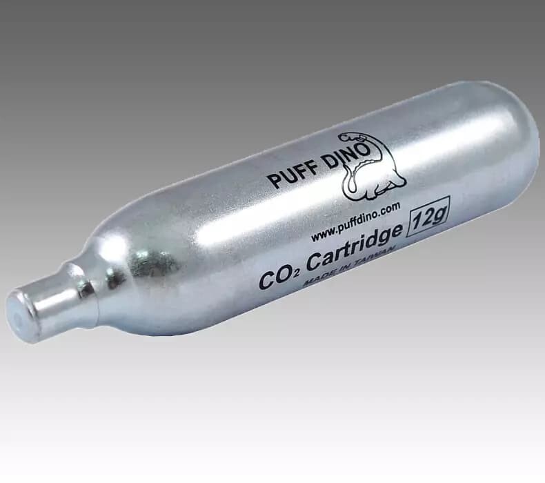 恐龍(Puff Dino)」生產的 12g 無牙 CO2 小鋼瓶是一款專為高壓氣動裝置設計的拋棄式氣瓶,以其氣體精純和壓力穩定著稱,主要應用於生存遊戲、鎮暴槍及工業用途。
