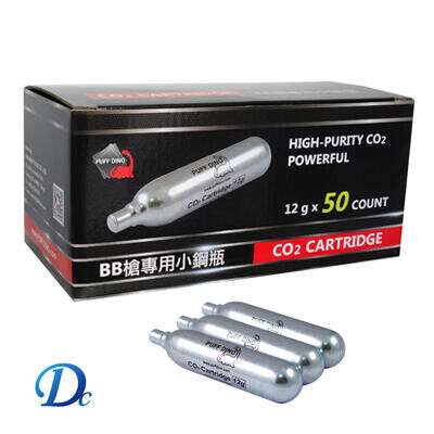 恐龍(Puff Dino)」生產的 12g 無牙 CO2 小鋼瓶是一款專為高壓氣動裝置設計的拋棄式氣瓶,以其氣體精純和壓力穩定著稱,主要應用於生存遊戲、鎮暴槍及工業用途。
